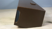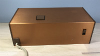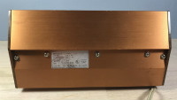 The clock features fluorescent green digits on black background illuminated by a black light bulb. bulb used is the NL80T8B. This is the exact bulb used in the Panasonic RC-7462, another period black light clock. Unfortunately, by this time after it's manufacture, the black light bulb is very weak, barely causing the digits to glow.